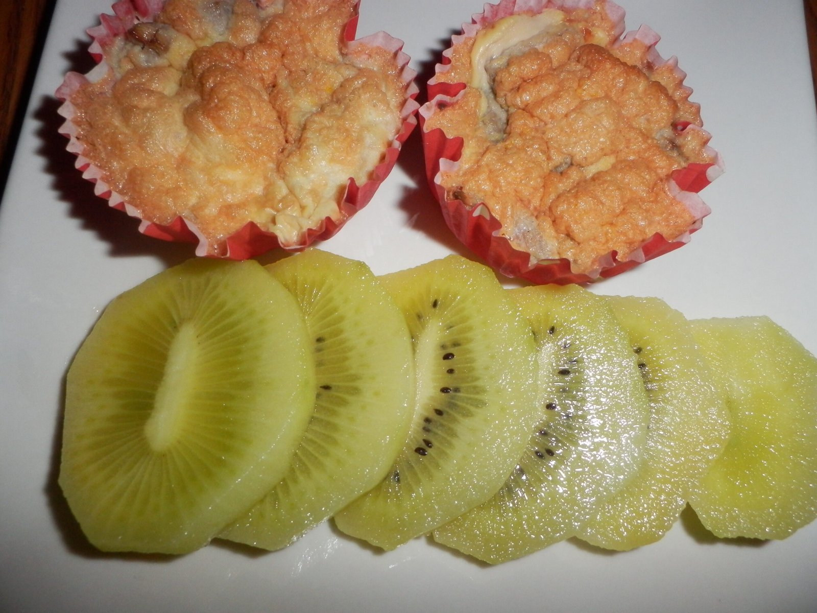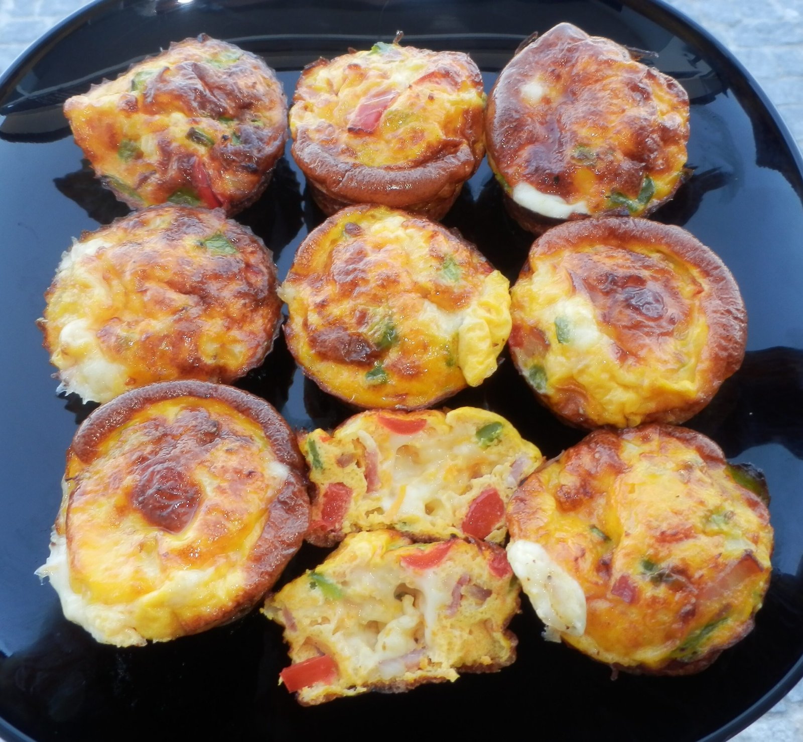 Juntar todos estes ingredientes e dividir por várias forminhas. Regar com 6 ovos batidos com 2 colheres de sopa de polvilho doce (o polvilho doce é opcional, podem usar apenas os ovos). No meu forno a 180ºC ficaram prontos entre 15 a 20 minutos.