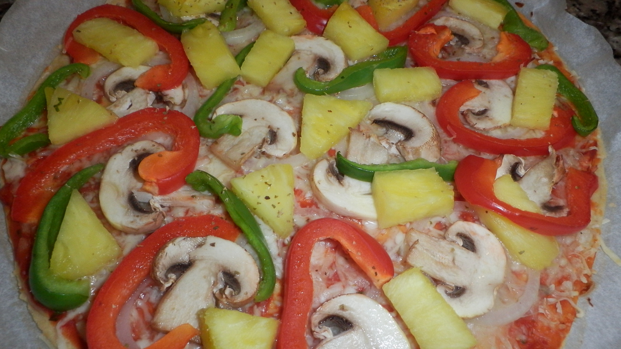 Pizza low-carb com base de frango (Receita AQUI) + creme de legumes