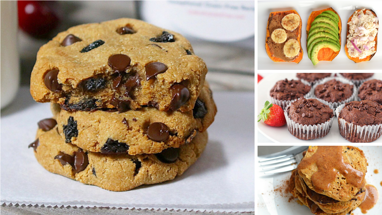 Para fazer esta receita do blog FitLiving Eats vão precisar de batatas-doces cozidas, manteiga de amêndoa, xarope de ácer (o “maple syrup”, que podem trocar por mel), bebida de amêndoa não adoçada, “ovo” de linhaça (ou podem usar um ovo), cacau puro em pó, farinha de amêndoa, fermento, extrato de baunilha, pitada de sal e pepitas de cacau (de preferência com uma % de cacau igual ou superior a 74). Podem ver AQUI a receita completa.