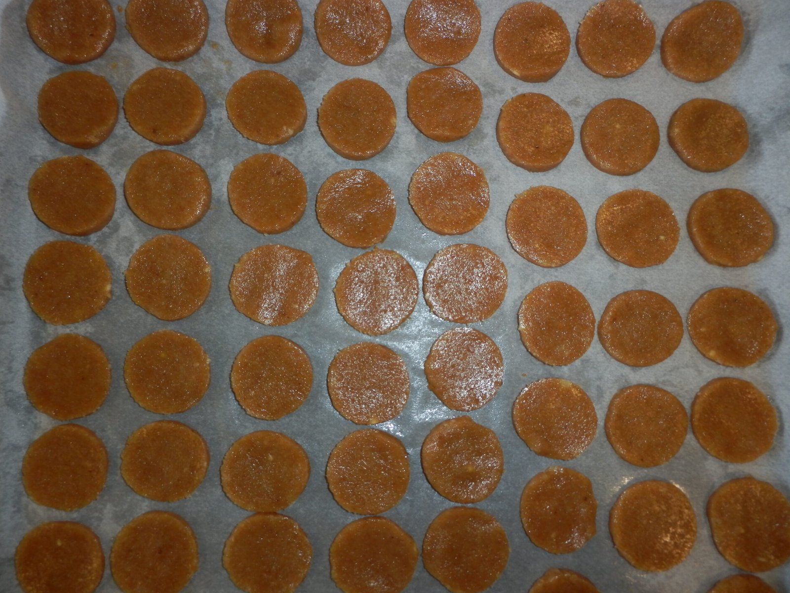 6. Moldar as bolachas no formato desejado e colocar por cima de papel vegetal no tabuleiro de ir ao forno.