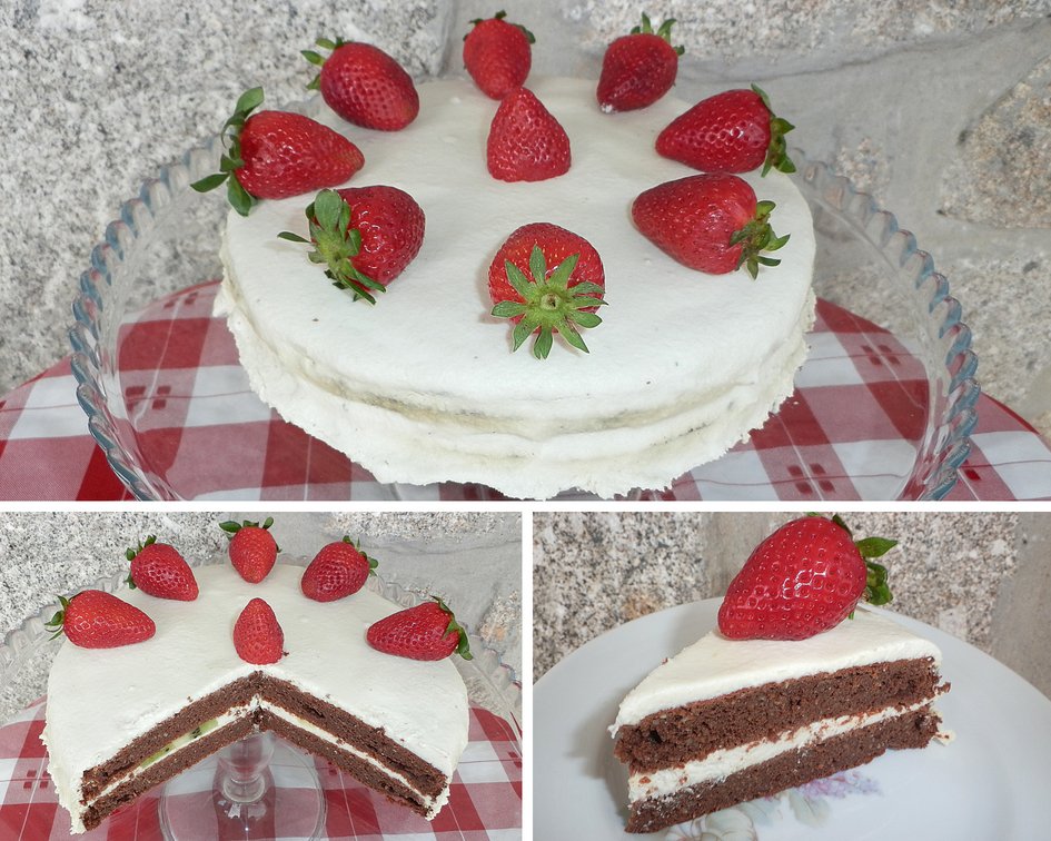 Este bolo é magnífico, delicado e surpreendeu toda a família! Não tem glúten, lactose nem açúcar refinado. Ficou com uma textura fofa e com uma doçura harmoniosa. A combinação do suave creme de caju e limão com o bolo de chocolate, tornaram-no perfeito.