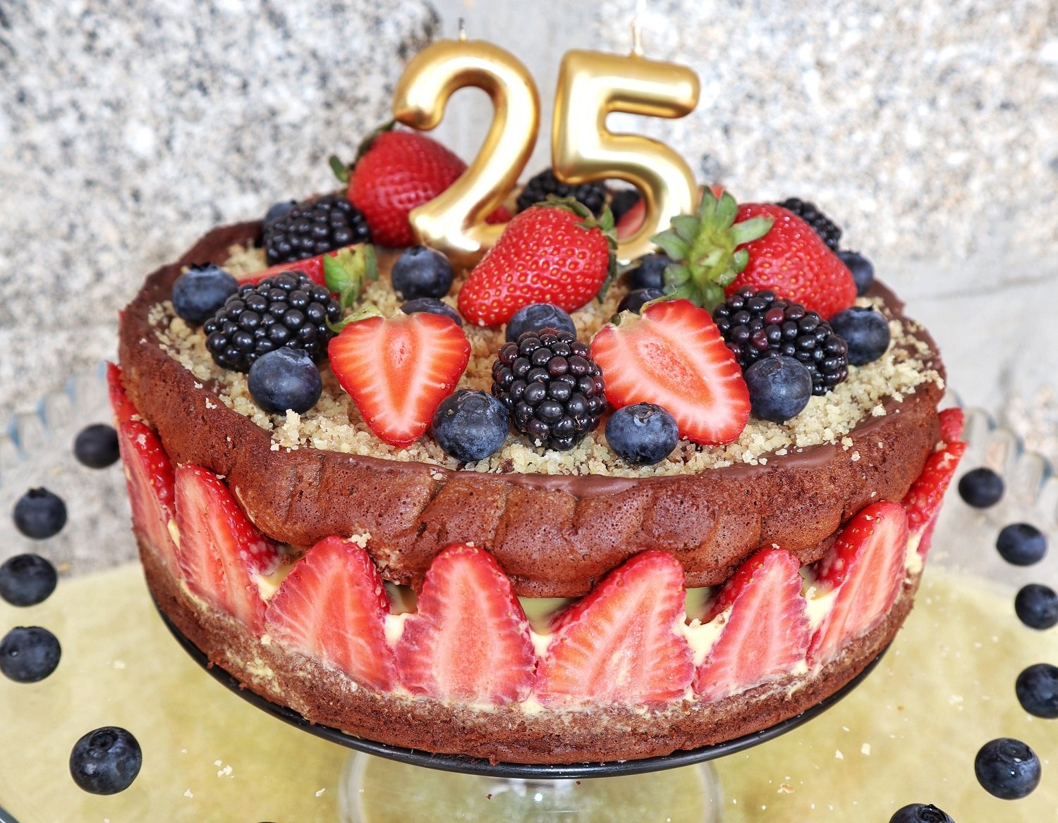Bolo de Aniversário: Bolo Fofo de Chocolate com Creme Pasteleiro de Limão (Sem Glúten, Sem Lacticínios, Sem Refinados)