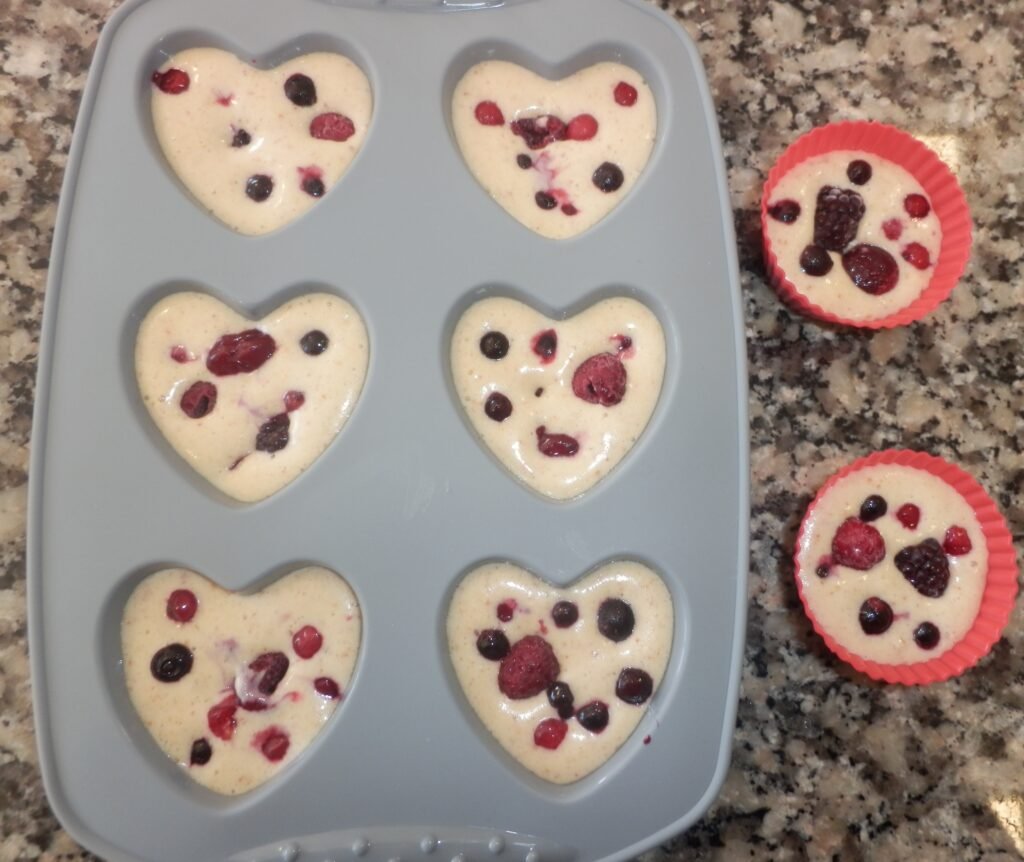 4. Espalhar um pouco de frutos vermelhos em cada uma das forminhas.