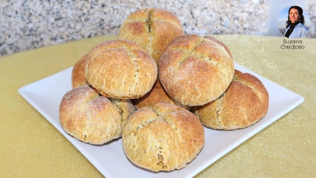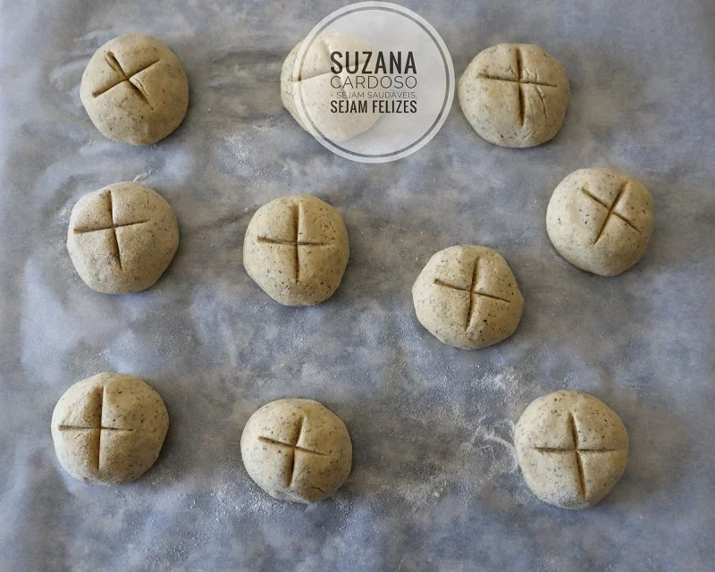4. Leve ao forno pré-aquecido a 180ºC, cerca de cerca de 20 a 25 minutos. O tempo depende do seu forno e do tamanho/dimensão que der aos seus pãezinhos. Bom apetite | Suzana Cardoso – Sejam Saudáveis, Sejam Felizes