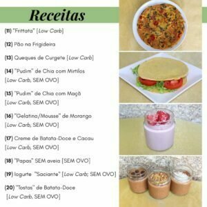 • Tem 20 RECEITAS para todos os gostos: destas 20 receitas, 13 são low carb e 10 não têm ovo;