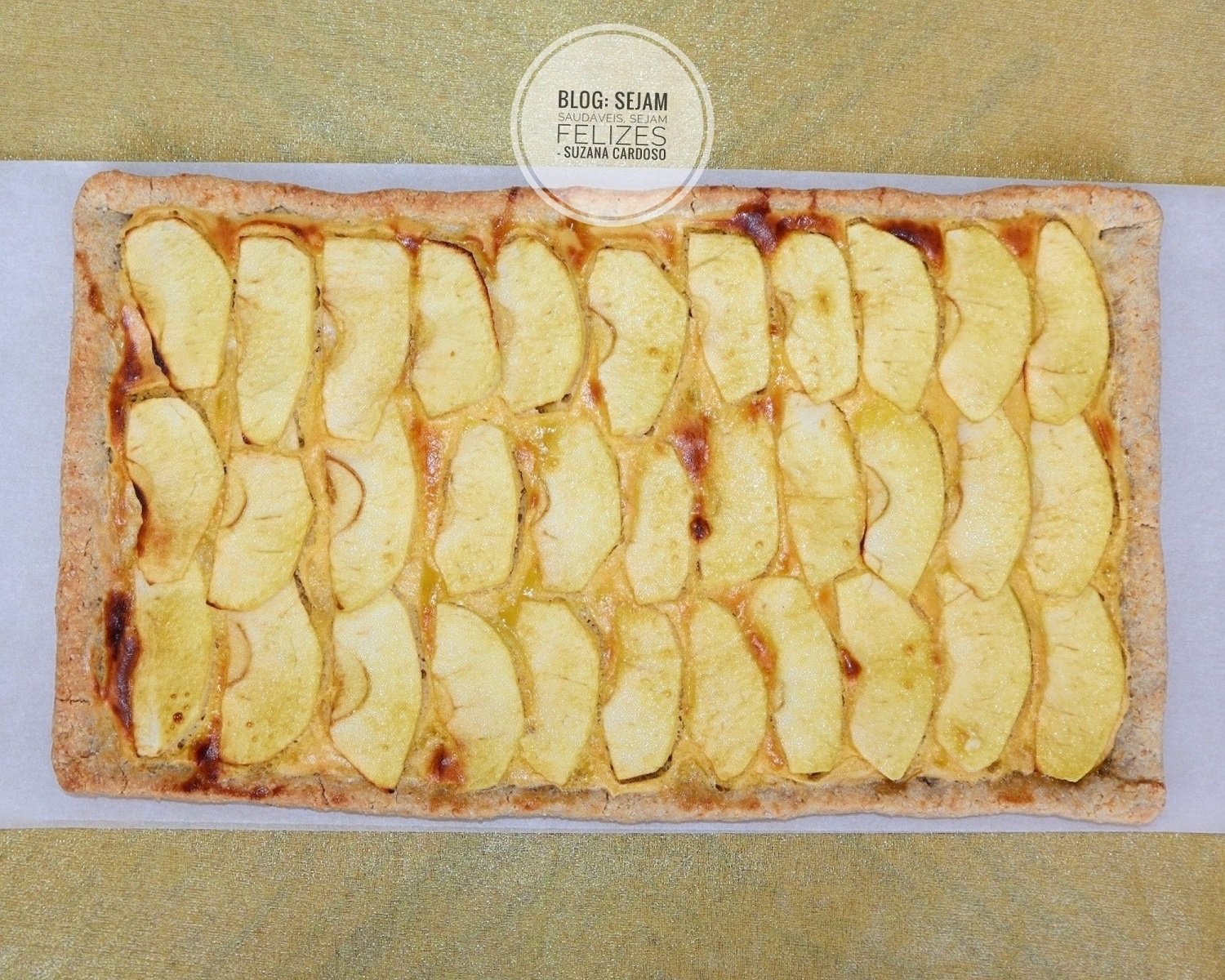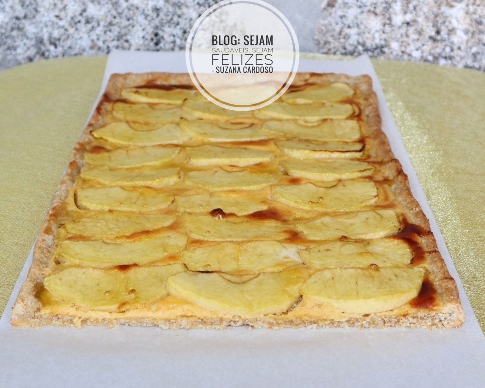 - Leve ao forno pré-aquecido a 160ºC para dourar as maçãs. A minha tarte ficou pronta em 13 minutos. Delicie-se. É magnífica! Sejam Saudáveis, Sejam Felizes | Suzana Cardoso